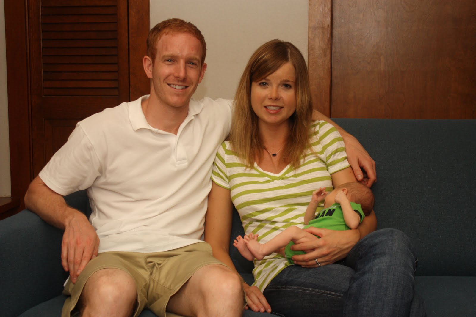 Milestones: Jonah can lift his head up for brief periods when on his tummy and can hold it on his own for about 5 seconds when upright and wide awake. He has been looking at us when we are talking and looks like he is listening. He can roll from side to side when on his play mat and doesn’t seem to like being on his back. He can get his hands to his mouth and occasionally sucks on his wrist or fist, and looks like he will probably be a thumb sucker once he can figure out the technique. He is starting to stretch out his legs, but still prefers them curled up like a frog. Friday, right before Julian left for work, Jonah was getting tucked in and he looked up at us and smiled. It was a beautiful and peaceful expression.